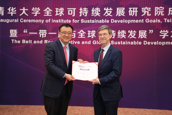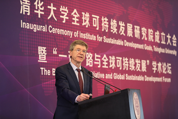 仪式结束后,还举行了“一带一路与全球可持续发展”学术论坛。三位全球可持续发展领域的权威专家Jeffrey Sachs、刘燕华、贺克斌应邀分别围绕可持续发展及一带一路相关议题发表主题演讲,论坛由清华大学公共管理学院副院长、清华大学全球可持续发展研究院执行院长朱旭峰主持。