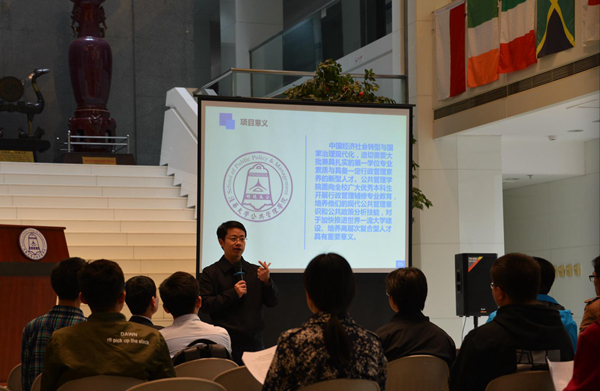 说明会上,薛澜院长从学科背景、学院建设、发展历程、师资力量、科研成果、国际合作、人才培养等角度全面系统介绍了学院的总体情况,并与同学们分享了学院发展的辉煌历程。薛澜指出,清华公管学院以建设“扎根中国、国际视野、清华特色”的国际一流公共管理学院为目标,有长远系统的学科布局与发展规划,学院拥有一支具备国情意识与国际视野的卓越师资队伍,现职教授全部拥有国内外一流大学教育背景,具有海外学习和研修经历,在项目设置中,清华公管学院坚持将国家战略需求与学术探索目标相结合,重视学科交叉研究,致力于建设高端、专业的智库群。薛澜强调,此次开展本科第二学位教育,意在培养具有公共管理专业意识、知识素养与应用能力的清华复合型本科人才,非常欢迎全校各院系的同学积极报考。
