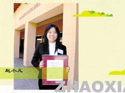 就这样,15岁的赵小凡便冒险成为了上海第一批为数不多的读国际课程的大陆学生,三年后,她如愿以偿进入斯坦福大学,去追求自己年少时想改善祖国环境质量的梦想。在斯坦福学习期间,赵小凡交出了一份出色的成绩单。2009年5月,她获得了斯坦福大学工学院本科生最高荣誉——弗雷德里克特曼奖。