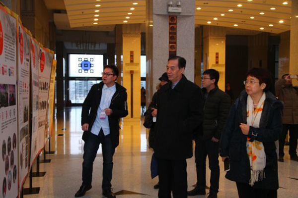 主论坛前,国务院参事室特约研究员、中国农业经济学会会长尹成杰,清华大学中国农村研究院副院长魏唯等参观了清华大学中国农村研究院成立5周年成果展。