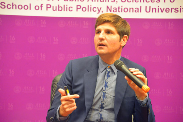 清华大学公共管理学院院长薛澜,巴黎政治大学公共事务学院院长阿尔刚(Yann Algan),新加坡国立大学李光耀公共政策学院院长马凯硕(Kishore Mahbubani)为同学们带来了一场别开生面的会谈。清华公管学院孟波副院长、崔之元教授、张严冰副教授、沈群红副教授,巴政公共事务学院战略委员会主席、法国前交通部部长、法国前对外贸易部部长安娜-玛丽·伊德哈克(Anne-Marie Idrac)等出席活动。清华大学近二百名中外学生现场聆听了对话。
