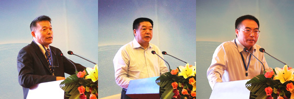 图为胡鞍钢(左一)、马新平(左二)、翟东升(右一)分别做主题发言。