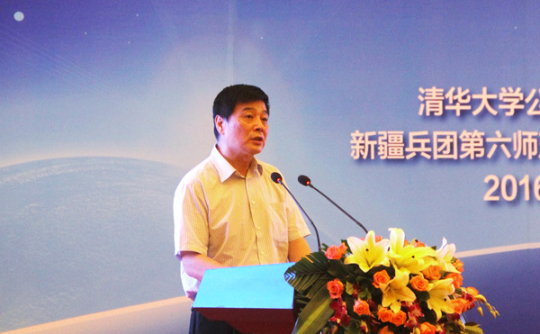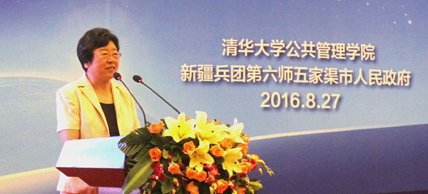 8月27日上午,以“一带一路”与开放发展为主题,由清华大学公共管理学院、新疆生产建设兵团(以下简称“新疆兵团”)第六师五家渠市人民政府联合主办的“第十一届清华大学公共管理高层论坛”在新疆五家渠市隆重开幕。