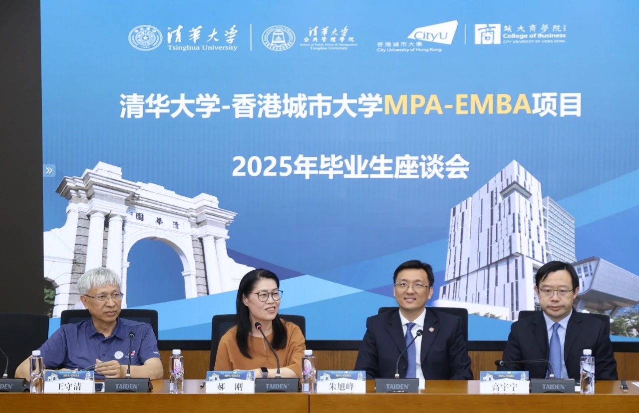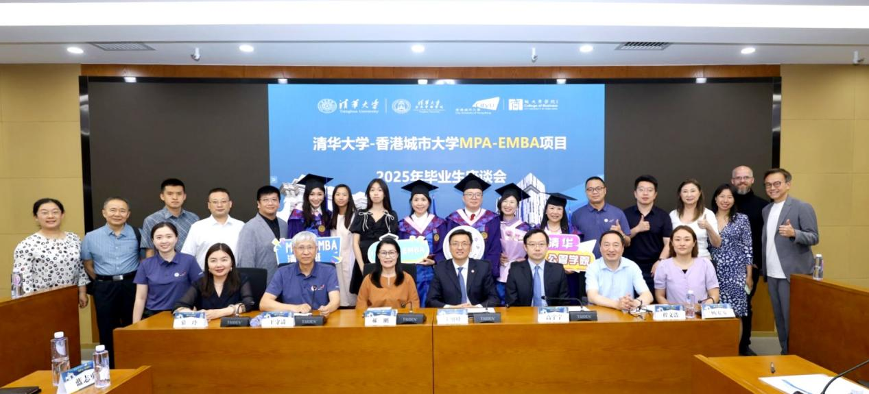 6月22日下午,清华大学-香港城市大学MPA-EMBA双硕士学位项目组在公管学院516教室举行了2025年毕业生座谈活动。清华公管学院院长朱旭峰,香港城市大学商学院副院长、MPA-EMBA双硕士学位项目联席主任郝刚,清华公管学院副院长高宇宁,MPA-EMBA双硕士学位清华大学项目主任王守清,MPA-EMBA项目清华大学授课教师代表蓝志勇、程文浩,清华公管学院院长助理兼院友办主任慕玲,清华公管学院教学办主任杨安安,MPA-EMBA香港城市大学项目主管梁民乐,清华大学项目主管李月琪,以及2025级全体毕业生共同出席了活动。本次活动由MPA-EMBA清华大学项目主任王守清主持,同时吸引了众多在读生、院友及毕业生亲友的热情参与。