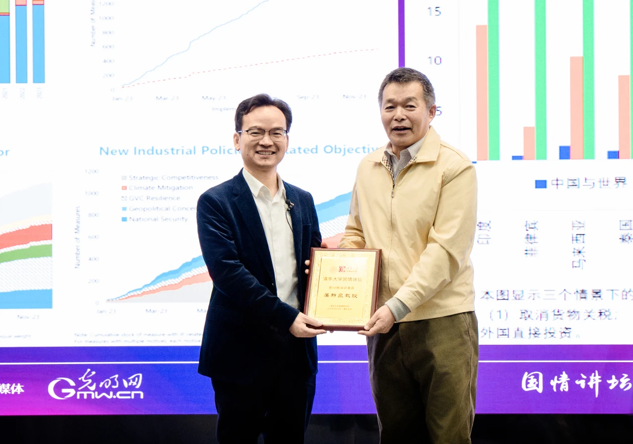 2025年4月18日晚,清华大学国情研究院“国情讲坛”第66讲在清华大学公共管理学院(以下简称“公管学院”)报告厅举行。对外经贸大学中国WTO研究院院长屠新泉教授发表了题为“特朗普对等关税的动机、影响和应对”的精彩演讲。此次活动由清华大学国情研究院、清华大学国家治理与全球治理研究院共同举办。清华大学文科资深教授、清华大学国情研究院名誉院长胡鞍钢,日本名古屋大学经济学院特聘教授、公管学院访问教授薛进军,公管学院副院长高宇宁副教授等嘉宾出席讲坛并作点评。公管学院教授、清华大学国情研究院院长周绍杰主持讲坛。