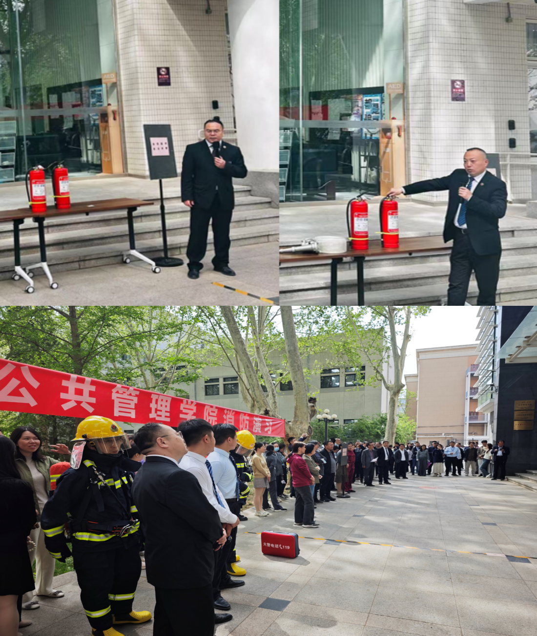 为检查学院办公大楼消防应急系统和现有应急机制的运作有效性,确保师生员工正确了解和掌握疏散逃生方面的知识,2025年4月17日上午,公管学院行政办组织了150余名师生员工参加了消防疏散演习。本次活动由学院院长助理、演习总指挥沈勇主持,特邀校保卫部防火办王亚平老师到场指导。