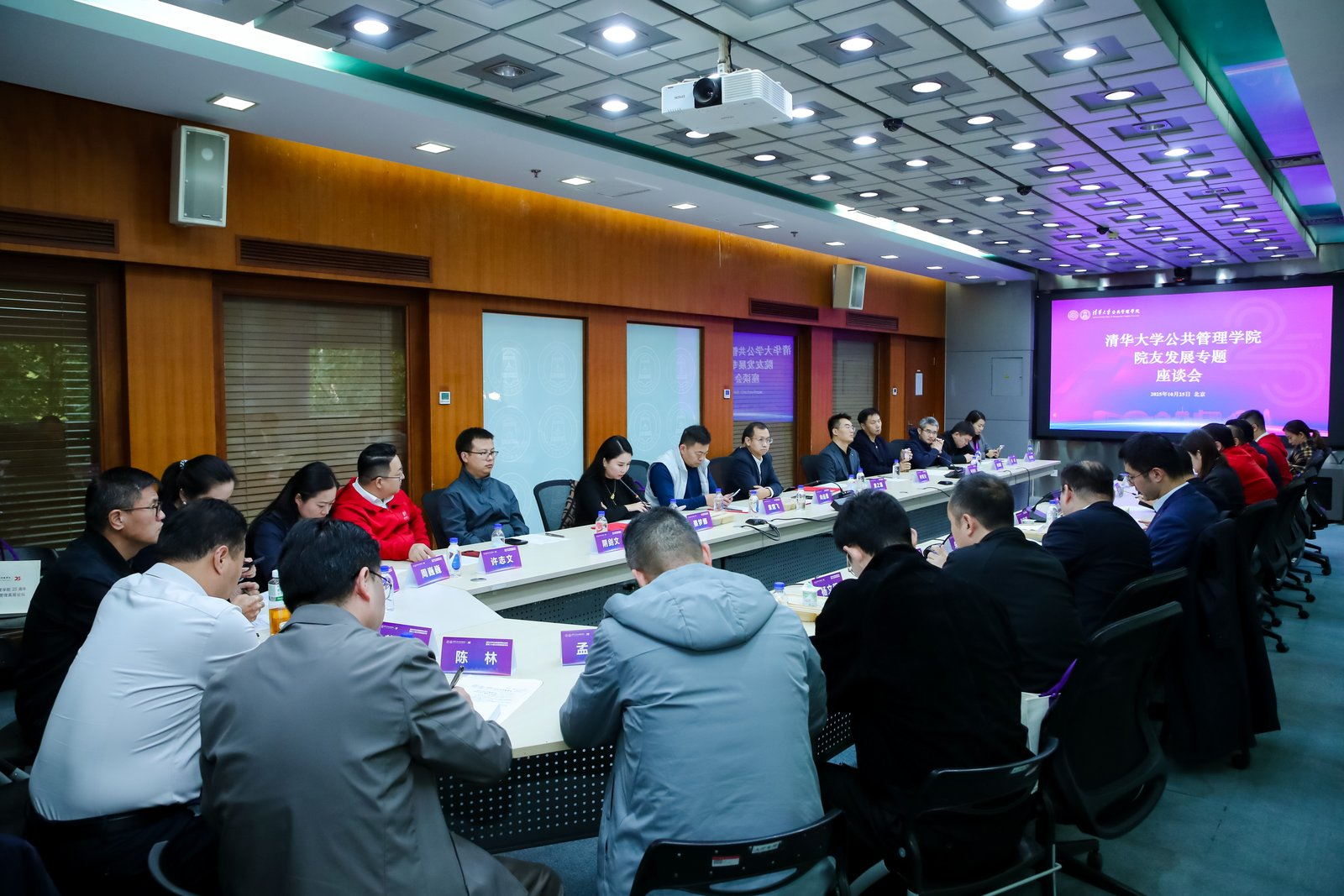 10月25日中午,清华大学公管学院举办院友发展专题座谈会。学院教师代表、来自全国各地的捐赠人代表、院友代表、“人工智能国家战略与政策前沿研修班”学员代表参会,共绘发展蓝图。