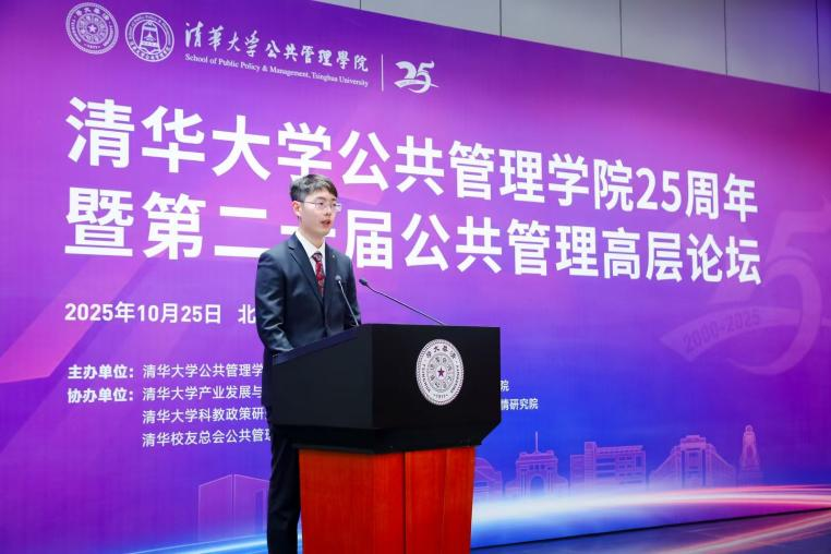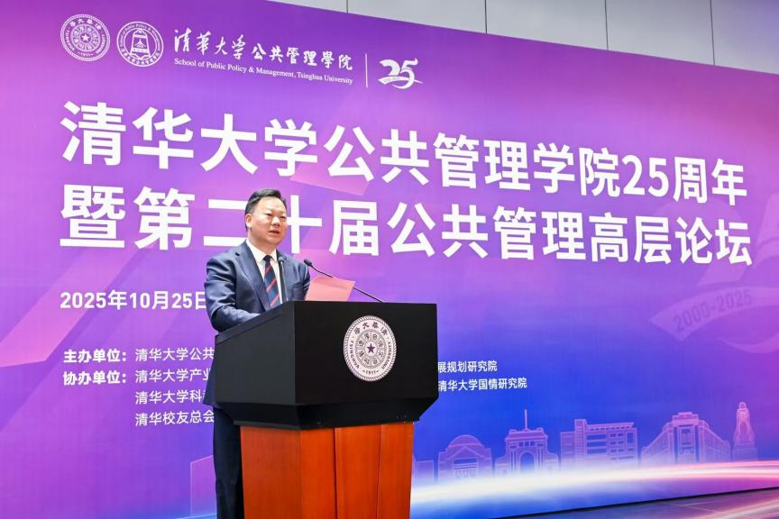 杨斌代表学校向公共管理学院建院25周年表示祝贺。他表示,学院始终坚持扎根中国大地,紧扣国家治理现代化脉搏,致力于培养公共管理领军人才,开展高水平政策研究,为公共管理学科发展贡献了清华智慧与力量。未来,希望学院在人才培养中强化使命感与育人实效,培育堪当民族复兴大任的公共治理先锋;在学术研究中坚持学术定位与政治站位统一,打造扎根中国、服务现代化建设的学术高地;在学科建设中凝聚共识,引领中国公共管理学科整体进入世界一流。