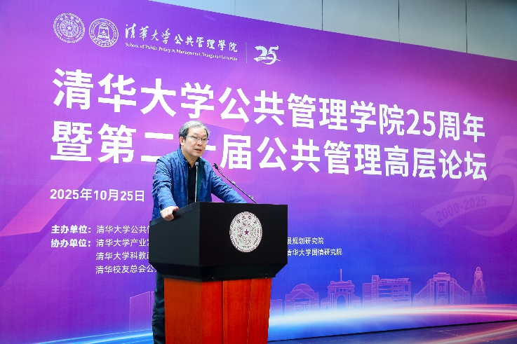 10月25日,以“面向未来的公共管理变革与自主知识创新”为主题的清华大学公共管理学院建院25周年暨第二十届公共管理高层论坛举行。第十三届全国政协常委、经济委员会原副主任、原中央财经领导小组办公室副主任杨伟民,中国行政管理学会会长、国务院原副秘书长、国家机关事务管理局原局长李宝荣,中国社会科学院大学教授、中国行政管理学会专家顾问委员会主任、国务院原副秘书长江小涓,清华大学党委副书记过勇等出席会议。论坛开幕式与主旨发言环节由公管学院院长朱旭峰主持。