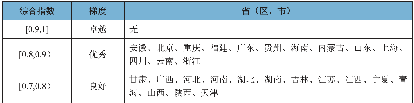 省(自治区、直辖市)政府中,13家位于“优秀”梯度,14家位于“良好”梯度。