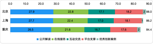 报告从公开解读、在线服务、互动交流、平台支撑和优秀创新案例等5个方面开展调查研究。发展水平较为领先的网上政府(网上政府)情况如下: