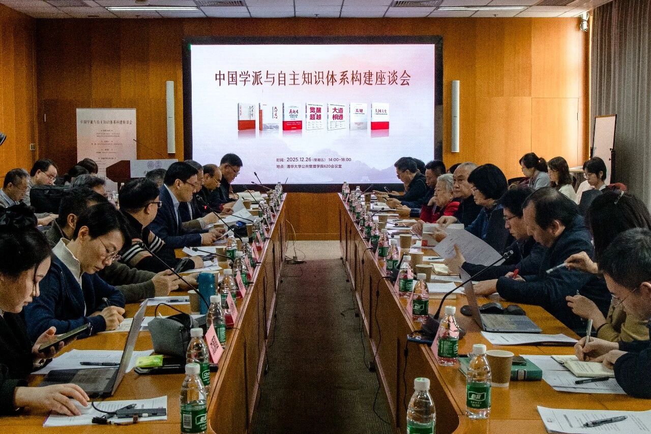 2016年5月17日,习近平总书记主持召开哲学社会科学工作座谈会并发表重要讲话,提出加快构建中国特色哲学社会科学的重大战略任务。2025年12月26日下午,由中国人民大学出版社、中国青年出版社、东方出版社主办,清华大学习近平新时代中国特色社会主义思想研究院中国式现代化理论体系研究中心、清华大学国情研究院协办的“中国学派与自主知识体系构建座谈会”(中国式现代化系列论坛第四期)在清华大学公共管理学院620会议室举行。
