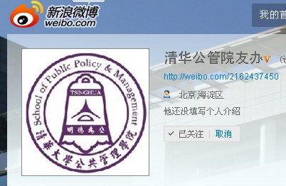 为了给学院广大师生、院友以及关心学院发展的朋友提供一个沟通、交流、发布重要信息的平台,同时也增加一个宣传学院的平台,清华大学公共管理学院院友办打破传统宣传模式,开通了“清华公管院友办”的新浪微博http://weibo.com/2162437450 。 欢迎老师、院友关注并批评指正,提供宝贵意见!