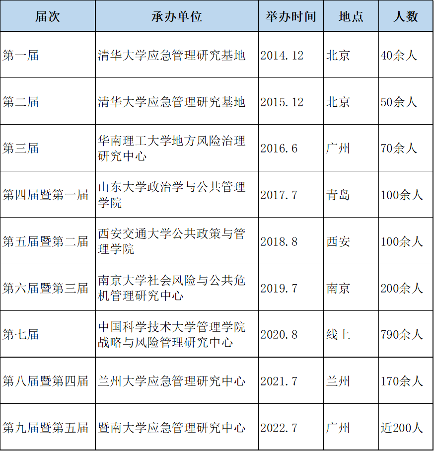 历届中国应急管理50人论坛·青年论坛暨暑期班概况