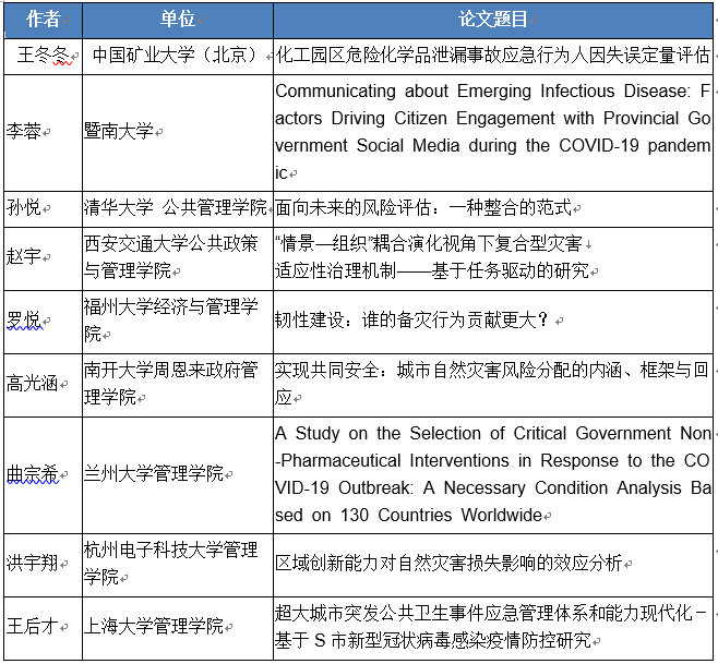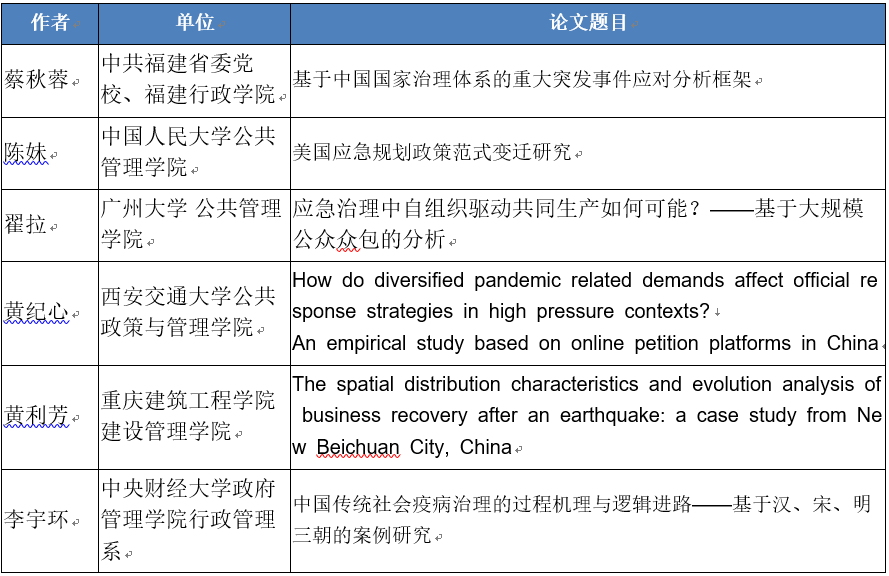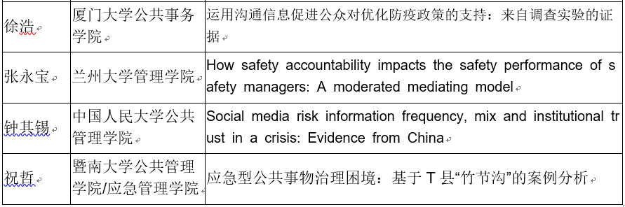 设立优秀论文奖,为最优论文提供发表渠道:将在20篇现场口头报告论文中评选出不超过5篇优秀论文,在论坛闭幕式上为论文作者颁奖。同时,已与Journal of Contingencies and Crisis Management编辑部协商一致,最优英文论文将通过快速通道录用发表。