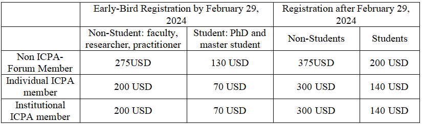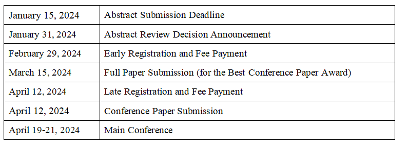 (Note: At least one author of the accepted paper has to register and pay the registration fee by February 29, 2024, in order for the paper to be included the conference program.)