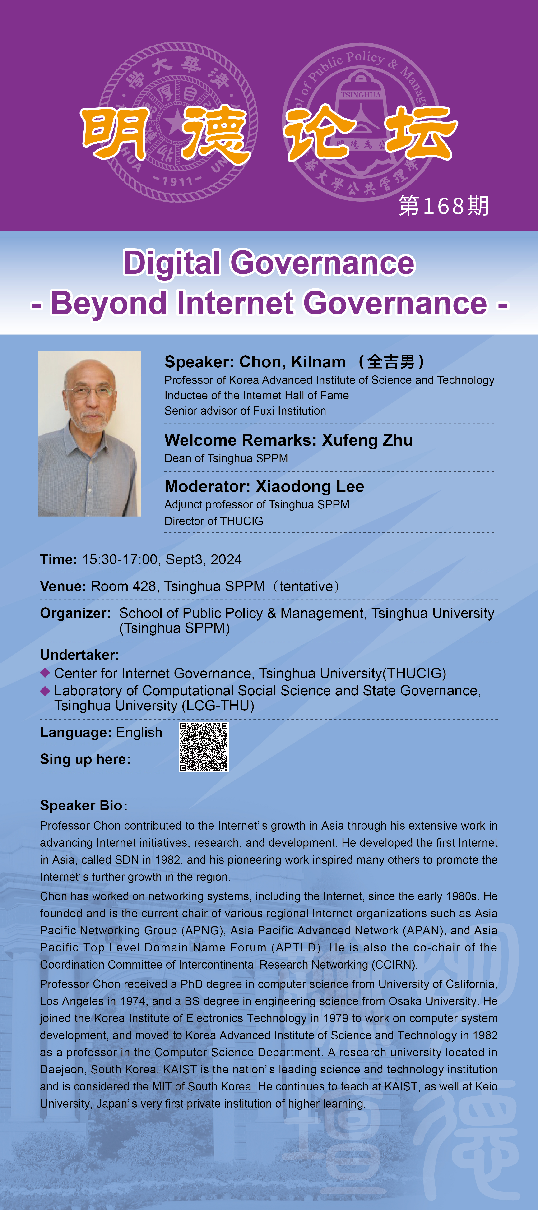 【主讲】全吉男(Kilnam Chon) 韩国科学技术院荣誉教授、伏羲智库高级顾问、互联网名人堂入选者