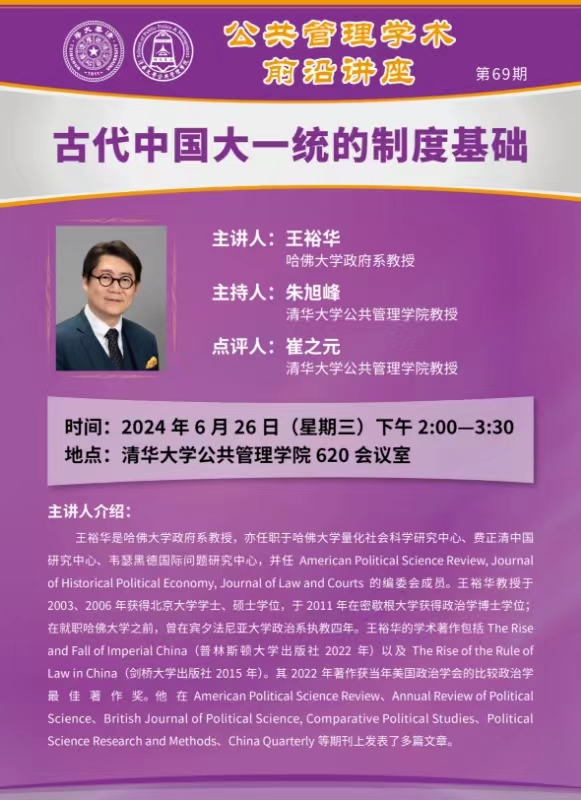 公共管理学术前沿讲座第69期:古代中国大一统的制度基础( 2024年6月26日 星期三 14:00-15:30)