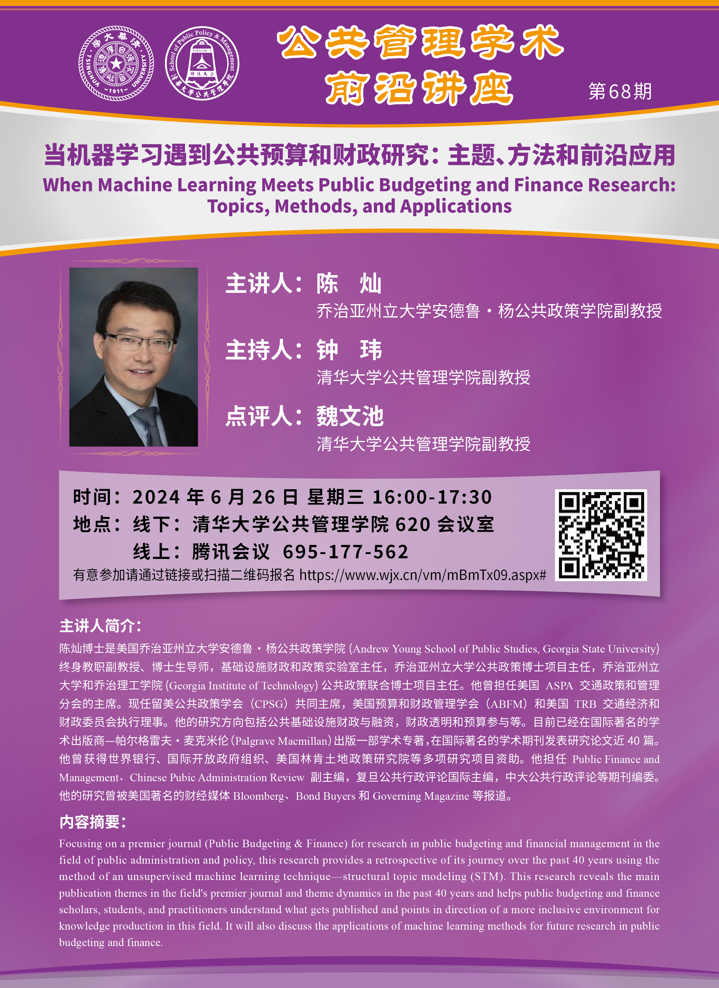 【地点】线下:清华大学公共管理学院620会议室