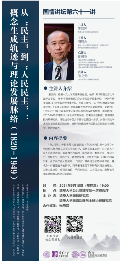 国情讲坛第61期:从“民主”到“人民民主”:概念生成轨迹与理论发展脉络(1820-1949)(2024年5月15日 星期三 19:00-21:00)