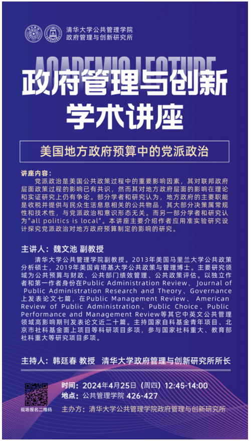 政府管理与创新系列学术活动:“美国地方政府预算中的党派政治”(2024年4月25日 星期四 12:45)