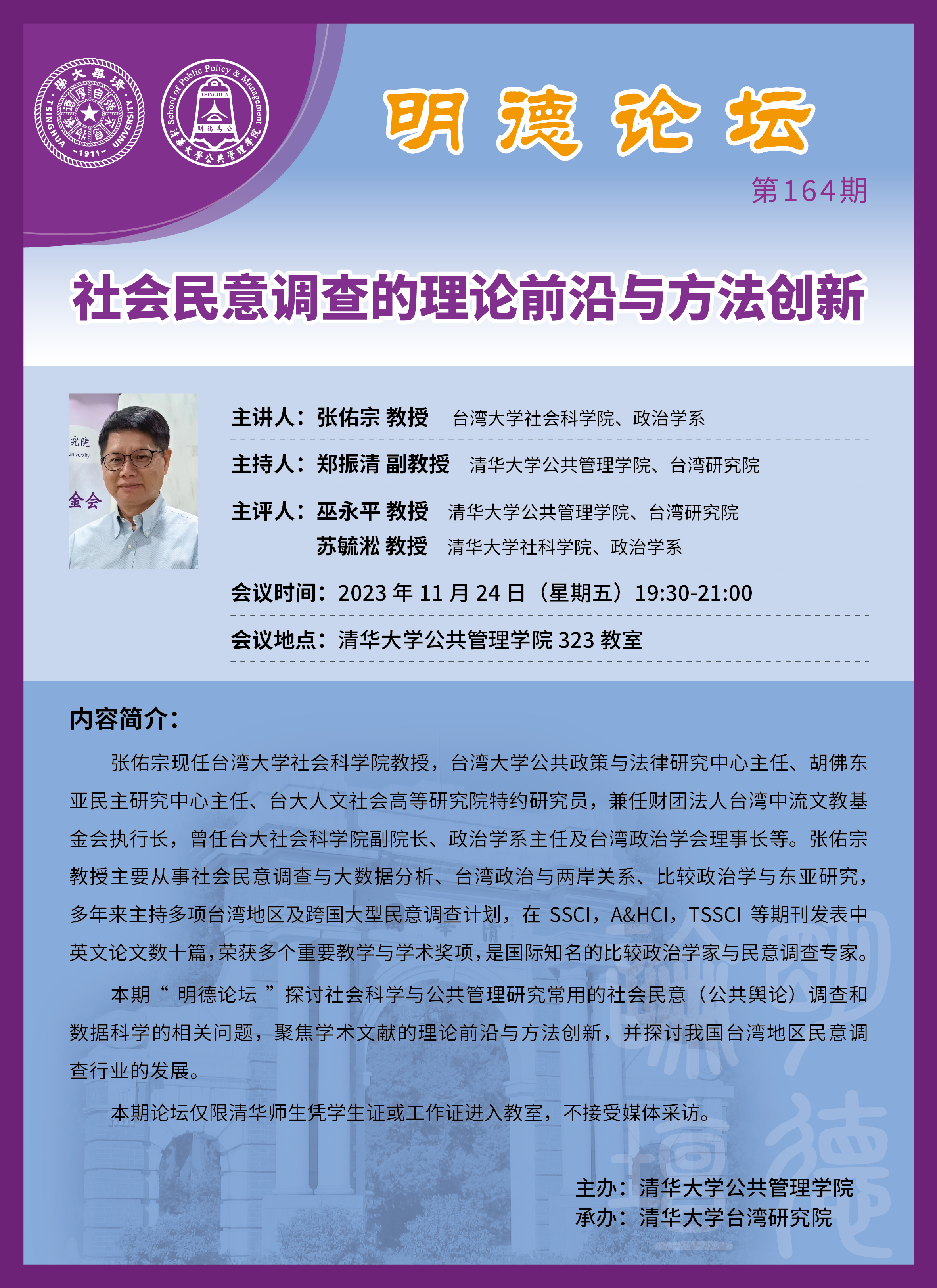 明德论坛第164期:社会民意调查的理论前沿与方法创新(2023年11月24日 星期五 19:30-21:00)