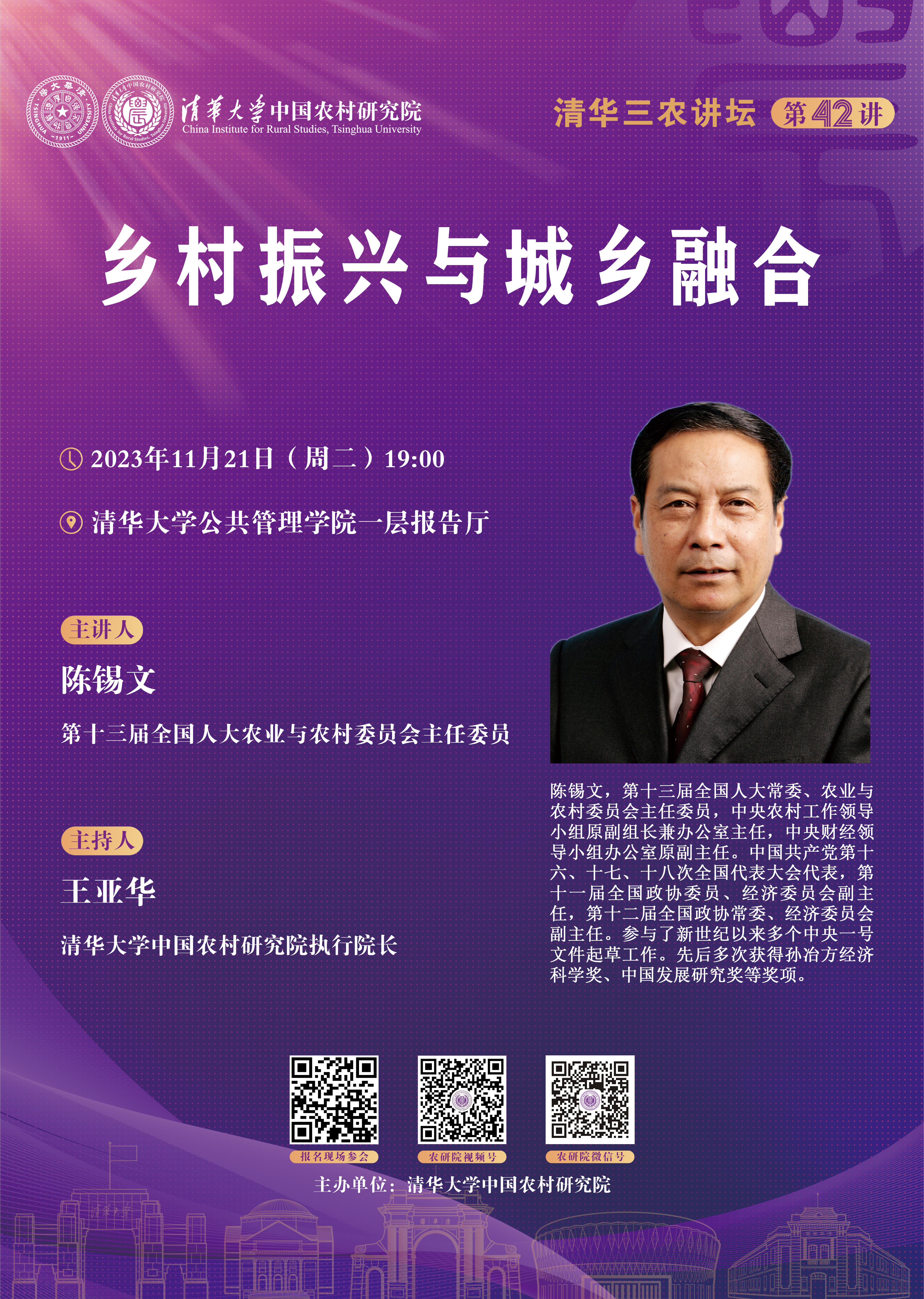 “清华三农讲坛”第四十二讲:乡村振兴与城乡融合(2023年11月21日 星期二 19:00)
