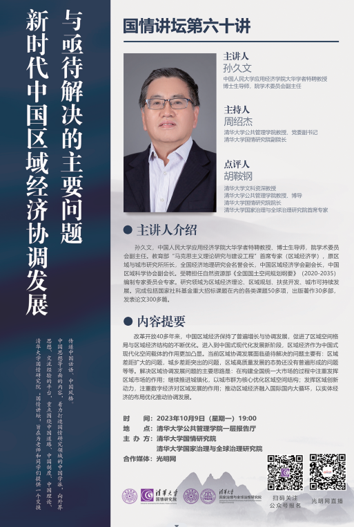国情讲坛第60期:新时代中国区域经济协调发展与亟待解决的主要问题(2023年10月9日 星期一 19:00-21:00)