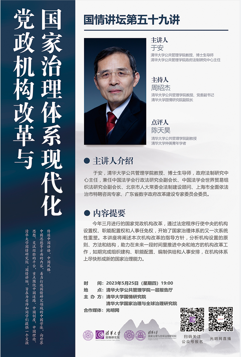 国情讲坛第五十九讲:党政机构改革与国家治理体系现代化(2023年5月25日 星期四 19:00-21:00)