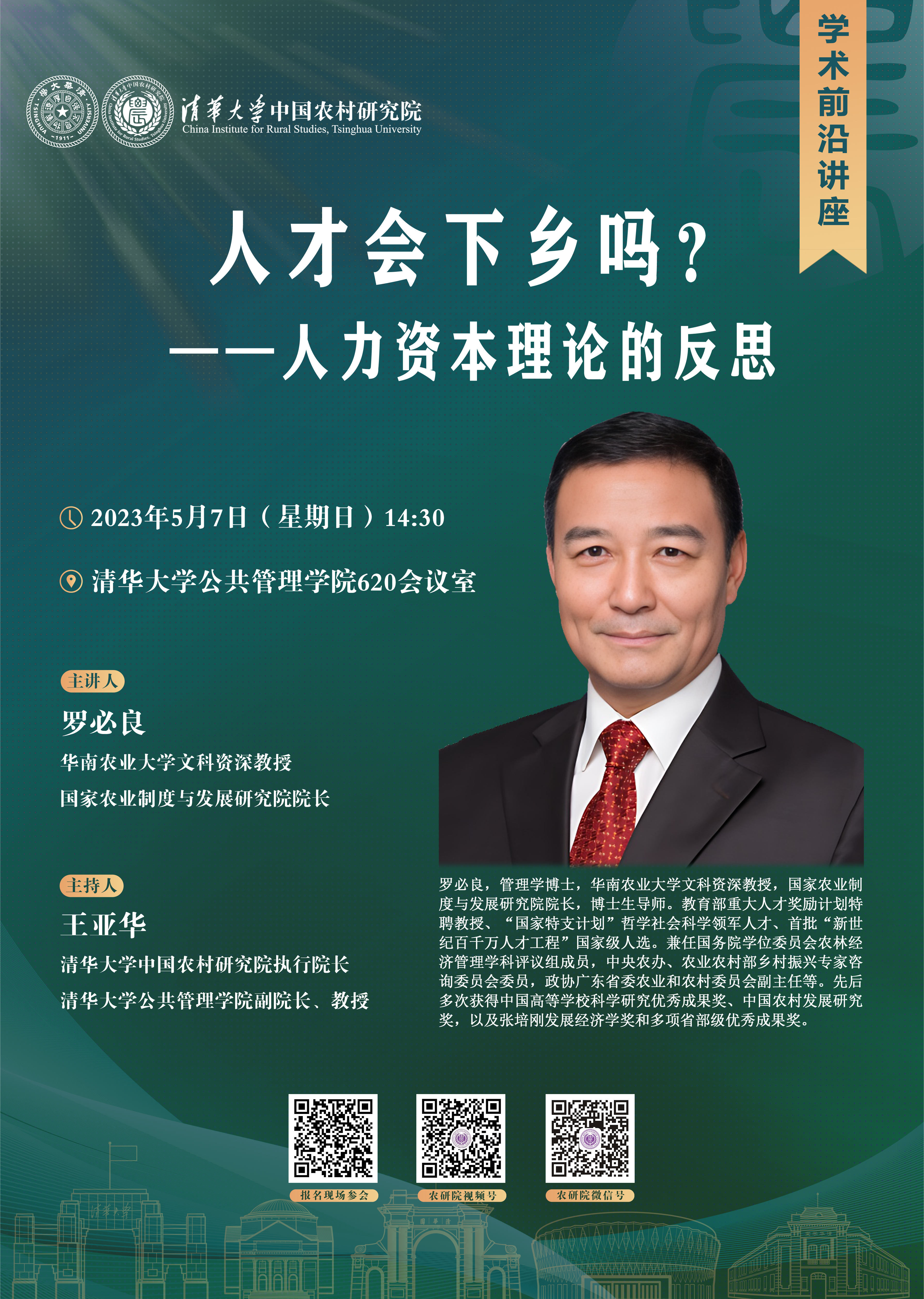 清华大学中国农村研究院学术前沿讲座:人才会下乡吗?——人力资本理论的反思(2023年5月7日 星期日 14:30)