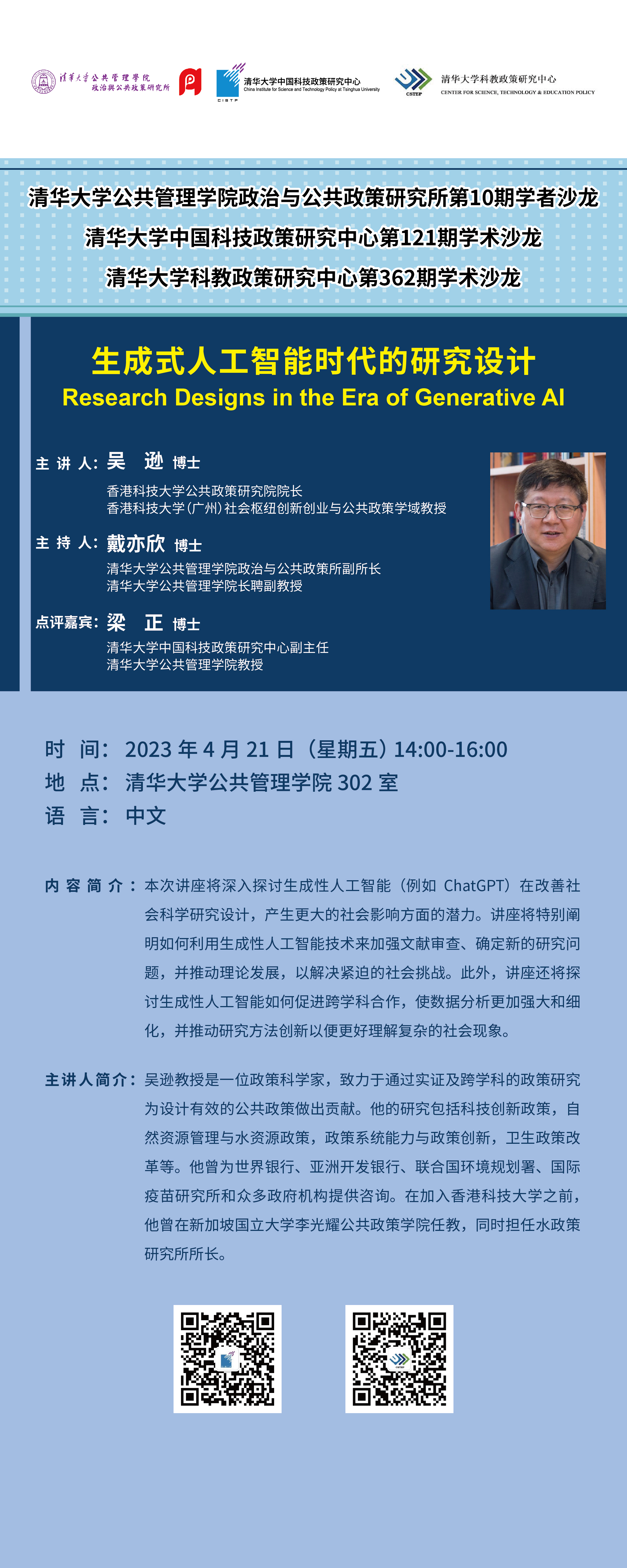 清华大学公共管理学院政治与公共政策研究所第10期学者沙龙/清华大学中国科技政策研究中心第121期学术沙龙/清华大学科教政策研究中心学术沙龙第362期(2023年4月21日 星期五 14:00-16:00)