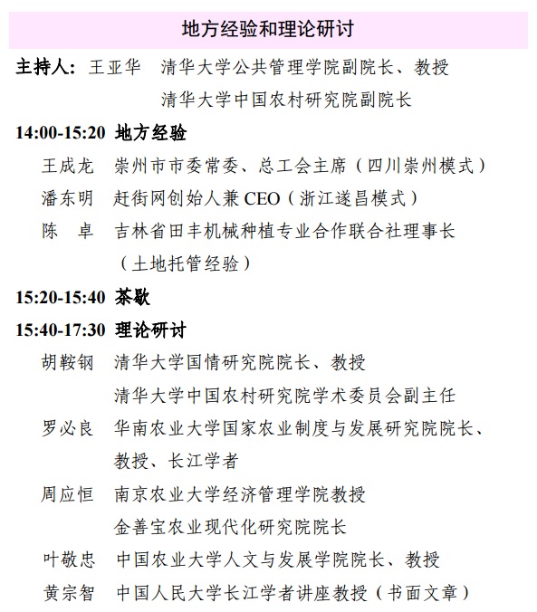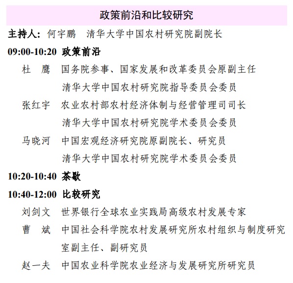 清华大学中国农村研究院“乡村振兴系列研讨会”第一次会议(2018年5月22日 星期二 9:00-17:30 )