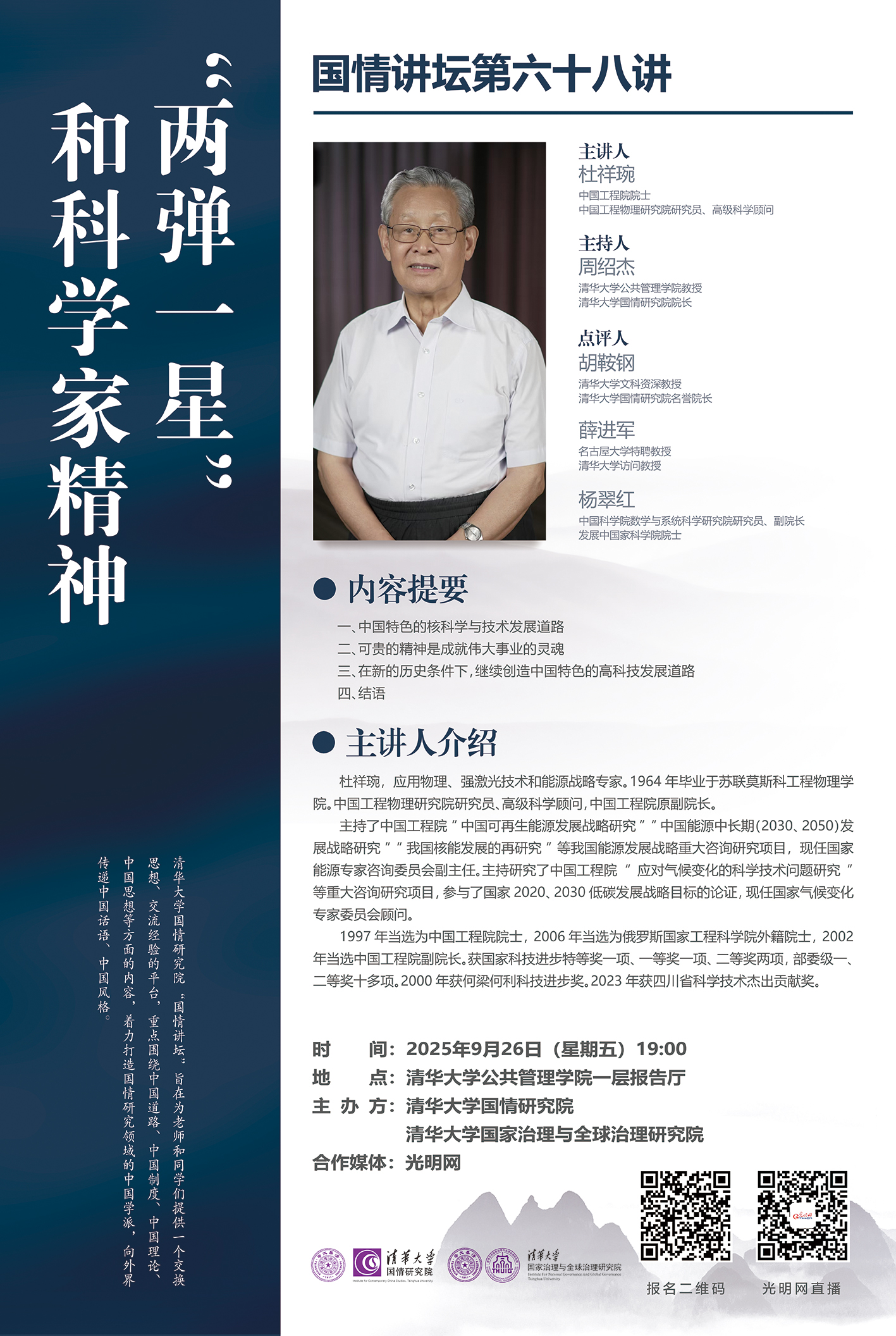 国情讲坛第68讲:“两弹一星”和科学家精神(2025年9月26日 星期五 19:00)