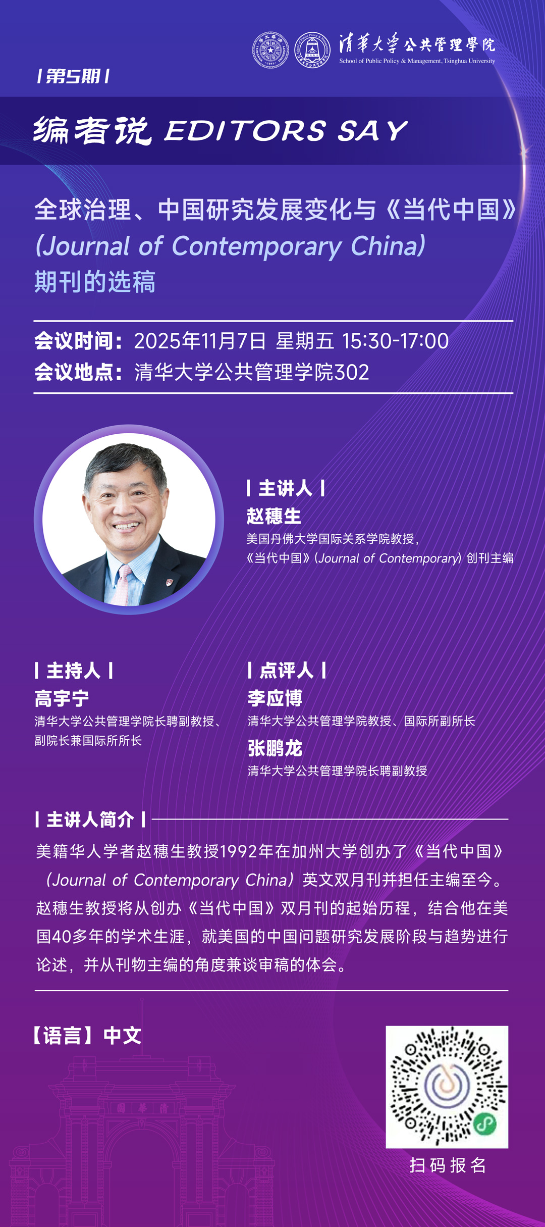 “编者说”第5期 主编视角:全球治理、中国研究发展变化与《Journal of Contemporary China》期刊的选稿(2025年11月7日 星期五 15:30-17:00)