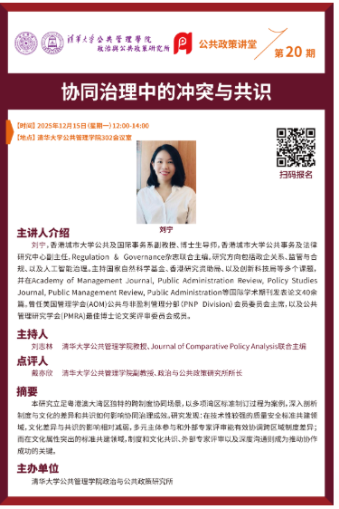 政治与公共政策研究所公共政策讲堂第20期——协同治理中的冲突与共识(2025年12月15日 星期一 12:00-14:00)