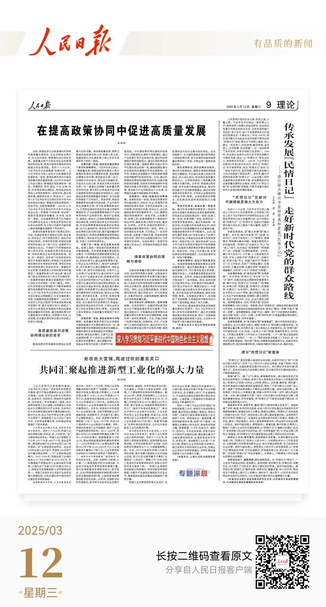清华大学公共管理学院教授、院长朱旭峰在3月12日《人民日报》理论版头条“深入学习贯彻习近平新时代中国特色社会主义思想”专题栏目发表文章《在提高政策协同中促进高质量发展》,深入探讨了提高政策协同对于推动高质量发展的重要性。