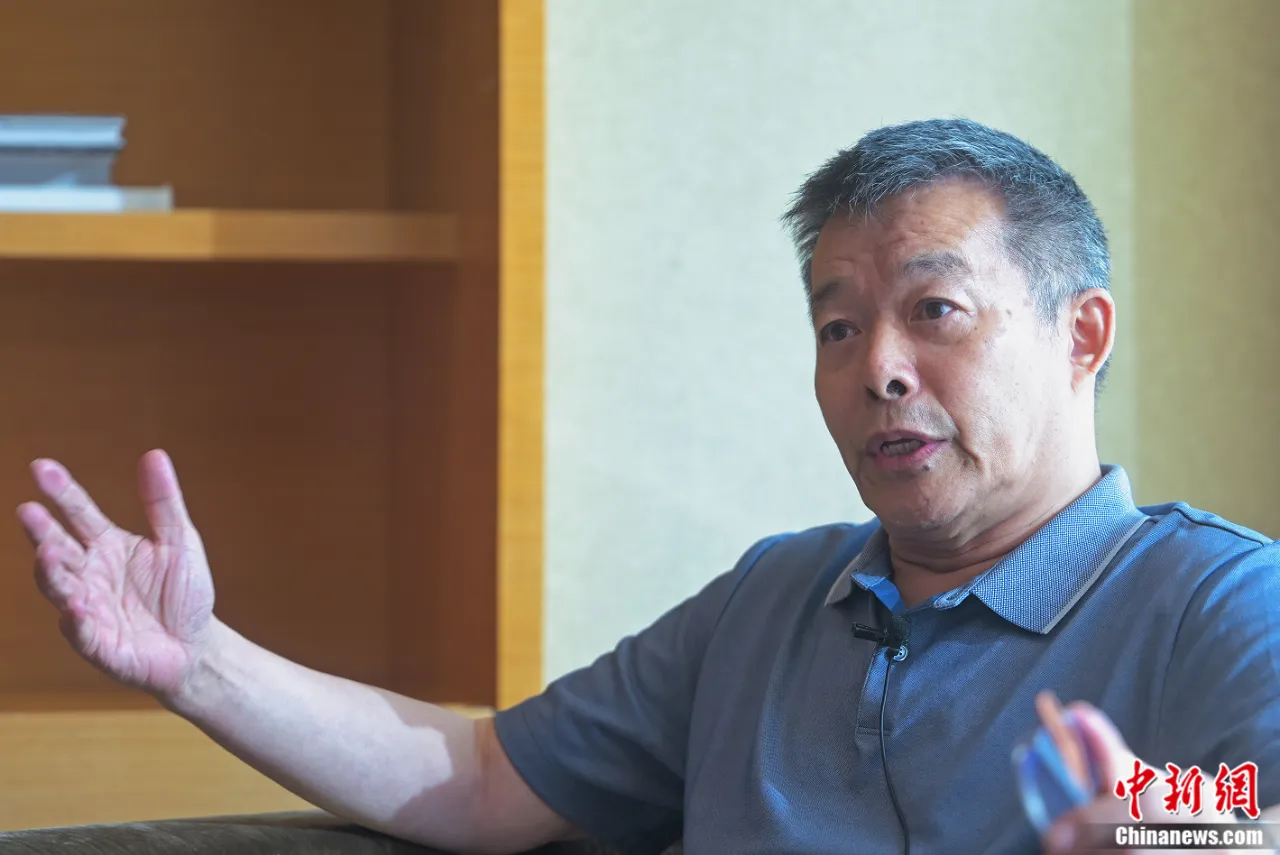 胡鞍钢在香港接受中新社“东西问”专访。中新社记者 陈永诺 摄