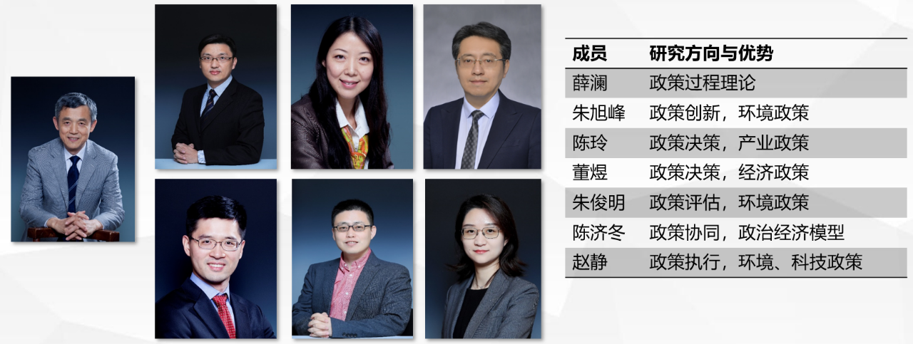 在这个组的成员中,朱旭峰老师更多关注专家参与政策制定过程中的作用、政策创新和政策扩散的机制等,在国际期刊发表了一系列高水平学术文章,成果处于国际学术前沿水平;陈玲老师提出共识决策模型,在制度演进方面开展了深入研究,发表了一些高水平学术成果。董煜老师长期在国家政策部门工作,加入清华公管学院之后在发展规划体系的作用机制、中国特色的政策过程方面做了大量工作,取得非常优秀的成绩。朱俊明老师主要开展政策评估方法论、政策决策与执行等领域的研究,取得了非常突出的学术成绩;陈济冬老师用政策博弈的方法,研究地方政府回应性激励机制,在政治经济学领域方面学术成就突出;赵静老师在中国特色的政策机制构建方面开展了大量研究,提出了决策删减-执行协商模型,展现出了极强的学术潜力。