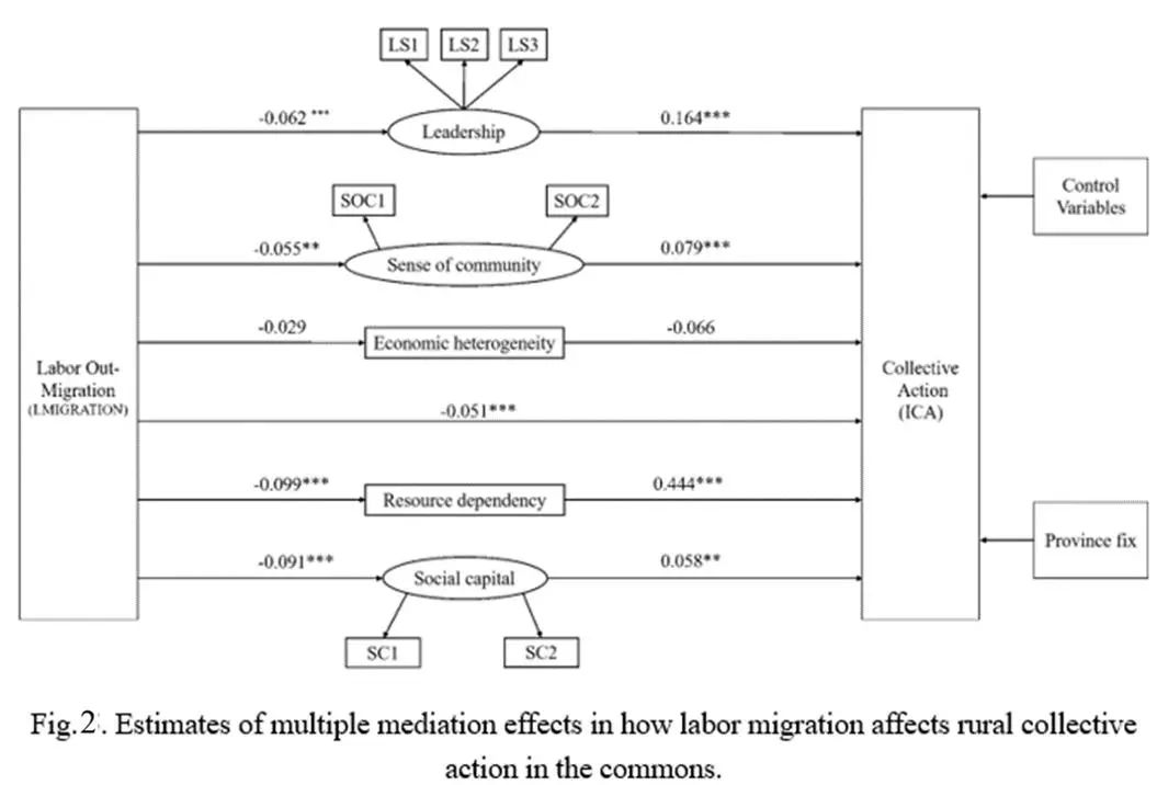 第三,研究解释并检验了劳动力外流如何影响公共事物集体行动的五种机制。