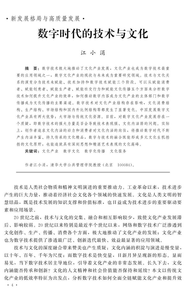 《中国社会科学》重磅文章丨江小涓: 数字时代的技术与文化