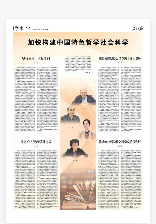 2016年5月17日,习近平总书记主持召开哲学社会科学工作座谈会并发表重要讲话,提出加快构建中国特色哲学社会科学的重大战略任务。5年来,哲学社会科学界深入学习贯彻习近平总书记重要讲话精神,构建中国特色哲学社会科学取得积极进展。为深入学习贯彻习近平总书记重要讲话精神,在新时代新征程上更好推动具有中国特色、中国风格、中国气派的哲学社会科学发展,人民日报理论部5月12日在京举办“加快构建中国特色哲学社会科学研讨会”。中央党校(国家行政学院)副校(院)长甄占民、中央党史和文献研究院学术和编审委员会主任陈理,全国人大常委会委员、社会建设委员会副主任委员、中国行政管理学会会长、我院院长江小涓,教育部副部长翁铁慧、中国社会科学院副院长王灵桂、中国人民大学校长刘伟、中国政法大学校长马怀德、中国现代国际关系研究院院长袁鹏、北京大学副校长王博出席研讨会并作主题发言。人民日报社副总编辑方江山主持会议并作总结发言。
