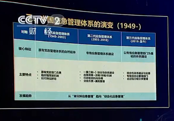 我国应急管理系统建设分为三个阶段。1949年至2003年,我国没有正式的应急管理体系,而是原有党政管理体系的自然延伸。经过2003年非典事件这一转折点,我国开始了专有应急管理体系的建设。2018年4月,应急管理部正式成立,我们成立了专门的应急管理部门,这是我国应急管理系统建设一大标志性事件。