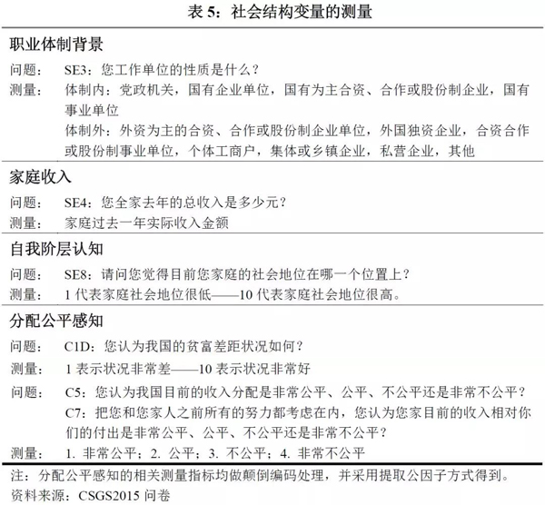 本文主要探讨的社会不平等变量的测量如下表5所示。