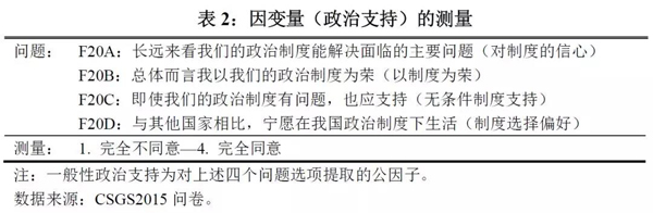文献来源:郑振清,苏毓淞,张佑宗.公众政治支持的社会来源及其变化——基于2015年“中国城乡社会治理调查”(CSGS)的实证研究[J].政治学研究,2018(03):51-61+127.