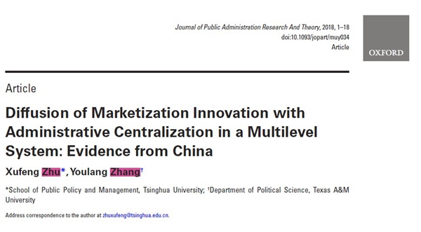 Zhu, Xufeng, and Youlang Zhang. Diffusion of Marketization Innovation with Administrative Centralization in a Multilevel System: Evidence from China. Journal of Public Administration Research And Theory, Forthcoming, DOI: 10.1093/jopart/muy034.