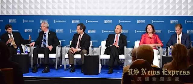 2日中午,斯坦福大学气候学家狄芬堡(Noah Diffenbaugh)、前共和党国会议员英格力斯(Bob Inglis)、美国环保协会总裁蕾加斯(Diane Regas)、埃克森美孚公司环境政策部经理特勒伦贝格(Peter Trelenberg)以及清华-布鲁金斯公共政策研究中心主任齐晔出席了关于环境问题的研讨会。