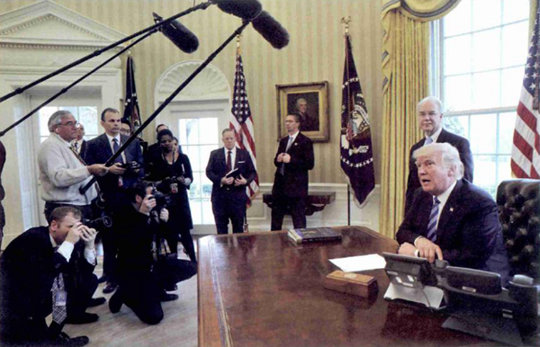 第二,特朗普仍受美国社会精英和舆论的制约。特朗普是以“反体制、反精英”当选总统和执政的,目前看来他仍在延续这一特征。美国政界和社会精英绝大多数仍然反对特朗普、反对其多数政策主张。这些人在一对一权力上不如总统,但合在一起的作用和影响仍然巨大。这些体制内的精英包括国会议员、法官、政府内的工作人员、大企业家和专家学者等。单是包括联邦调查局、国家安全局、中央情报局等在内的政府内精英就足以有能力、有办法给特朗普总统制造障碍,特朗普已经充分领教了这一点并表示愤愤不平,但又无可奈何。如美国情报、安全部门不断“透露”出的特朗普内阁成员、主要顾问及总统本人的“通俄”消息,安全部门和国会对此持续的调查等对特朗普政府及执政而言是重大的打击和挫折。