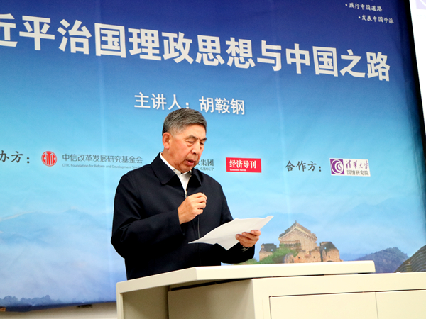 图为胡鞍钢作主题报告。