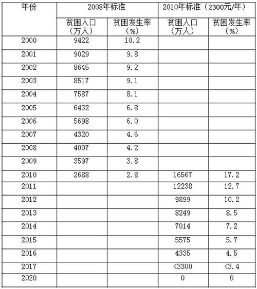 表4 全国农村贫困人口及贫困发生率(2000-2020)