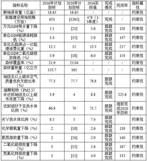 特别需要指出的就是大家所关心的雾霾指标,在“十三五”规划中首次将地级城市及以上城市空气质量优良天数引入,而这个任务可以说超额完成。第二是将PM2.5下降作为一个指标,下达的目标是3.9%,实际结果是8.8%。还提出了达到或好于Ⅲ类水体比例,2016年的计划目标是66.8%,但实际结果已经超前完成了2020年的目标(见表5)。